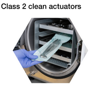 Actuators in Class 2 maintain all Class 3 enhancements listed above. In addition, components are run through a specialized cleaning and baking process. The assembly area is thoroughly cleaned and all production workers wear special gloves to avoid contamination. All actuators are double-bagged. Class 2 HKP actuators are designed to be low-outgassing in environments down to 10-6 torr.
