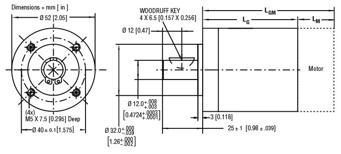1. Maximum load represents gearbox capability only. Continuous load torque capability will vary with gear ratio, motor selection, and operating conditions.