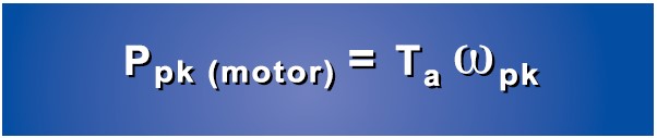 →ωpk(motor)@ motor output (gearbox input) = 4500 RPM = 471 rad/s |