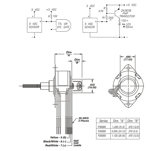 Simplicity and low cost make the encoders ideal for both high and low volume motion control applications. The internal monolithic electronic module converts the real-time shaft angle, speed, and direction into TTL compatible outputs. The encoder module incorporates a lensed LED light source and monolithic photodetector array with signal shaping electronics to product the two channel bounceless TTL outputs.
